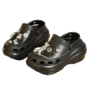 Sandal dengan desain khas Crocs, memiliki lubang-lubang pada bagian atasnya yang memungkinkan untuk dipasangi Jibbitz.