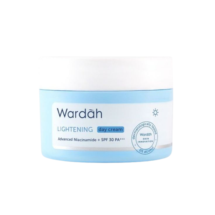 Wardah Lightening Day Cream Advanced Niacinamide adalah krim pelembap pagi yang diformulasikan untuk mencerahkan dan melindungi kulit dari efek buruk sinar matahari (UV A dan UV B) serta blue light. Krim ini mengandung Advanced Niacinamide yang membantu mencerahkan kulit dan menyamarkan noda gelap, serta SPF 30 PA+++ untuk perlindungan ekstra. Teksturnya ringan dan tidak lengket, cocok untuk kulit normal cenderung kering.